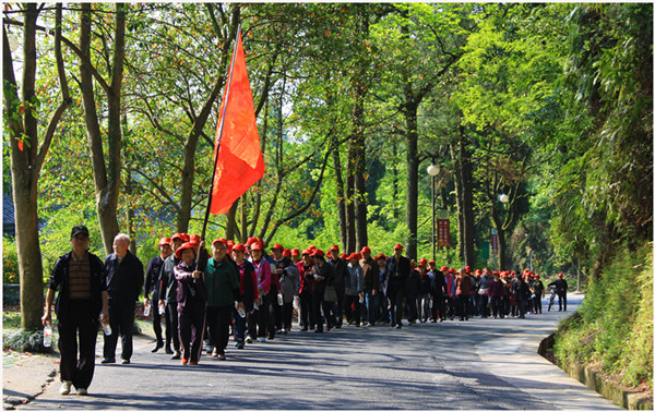 共有一百多名老同志參加了本次活動,大家從白云森林公園廣場出發(fā),沿著白云山棧道至雙橋健步走了3公里。大家一個個精神抖擻、興高采烈,龐大的隊伍成為森林公園一道靚麗的風景線。