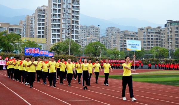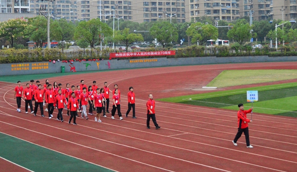 上午7:30,開幕式正式開始,今年是新中國(guó)成立70周年,麗汽員工著“中國(guó)紅”運(yùn)動(dòng)服,個(gè)個(gè)精神抖擻、神采飛揚(yáng)。由麗汽集團(tuán)員工組成國(guó)旗、司旗、會(huì)旗、會(huì)徽方隊(duì)和9支代表隊(duì)、1支裁判員代表隊(duì)依次通過主席臺(tái)檢閱。