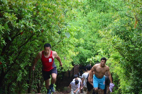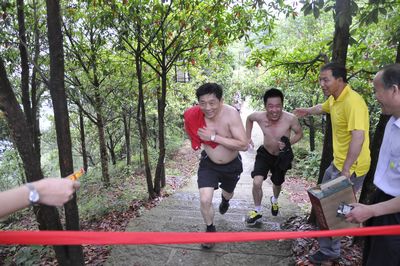 因拔河比賽冠軍要在運動會正式比賽期間產(chǎn)生,因此登山比賽也成為了集團(tuán)公司第五屆職工運動會產(chǎn)生首個冠軍的比賽項目。隨著裁判員的一聲令下,54名運動員爭搶著向著終點跑去。14分38秒后,快客分公司曾國偉第一個跑著經(jīng)過終點;客運東站樂進(jìn)15分16秒后第二個經(jīng)過終點,客長運分公司鄭雅明以16分07秒居第三。