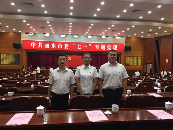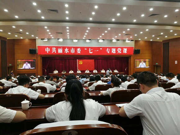 為迎接黨的96周年華誕,2017年6月27日上午,中共麗水市委組織部在市行政中心130報告廳組織開展了一次生動的“七一”專題黨課視頻會議,麗汽集團新黨員代表章雙林、莫森、葉珂應(yīng)邀參加黨課學(xué)習(xí),和現(xiàn)場60名余名參加儀式的新黨員在黨旗前莊嚴承諾。