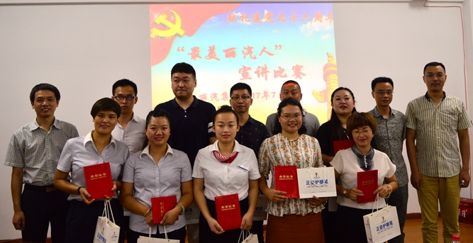 為了深化“最美麗水人”主題實(shí)踐活動(dòng),深入挖掘麗汽黨員員工在實(shí)施企業(yè)轉(zhuǎn)型升級(jí)、創(chuàng)業(yè)創(chuàng)新發(fā)展等重點(diǎn)工作中敢于攻堅(jiān)破難、敢于擔(dān)當(dāng)實(shí)干的先進(jìn)事跡和先進(jìn)人物,進(jìn)一步弘揚(yáng)麗汽“最美”精神,向黨的十九大獻(xiàn)禮,7月25日晚,麗汽集團(tuán)黨委、工會(huì)、團(tuán)委聯(lián)合組織開(kāi)展了“最美麗汽人”主題宣講比賽。來(lái)自麗汽集團(tuán)及下屬單位的16名選手參加角逐。麗汽集團(tuán)黨委委員、工會(huì)主席、團(tuán)委書(shū)記等擔(dān)任評(píng)委。