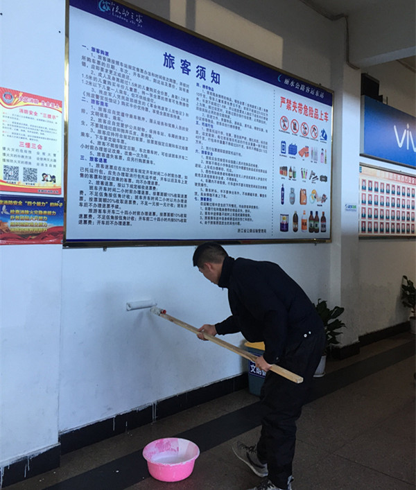 春節(jié)的腳步越來越近,為了提升站場的整體形象。1月13日下午亮點,東站黨員志愿服務(wù)隊的隊員們在支部書記江小華的帶領(lǐng)下對候車廳、過道、辦公室走廊、樓梯口等墻壁進行粉刷。