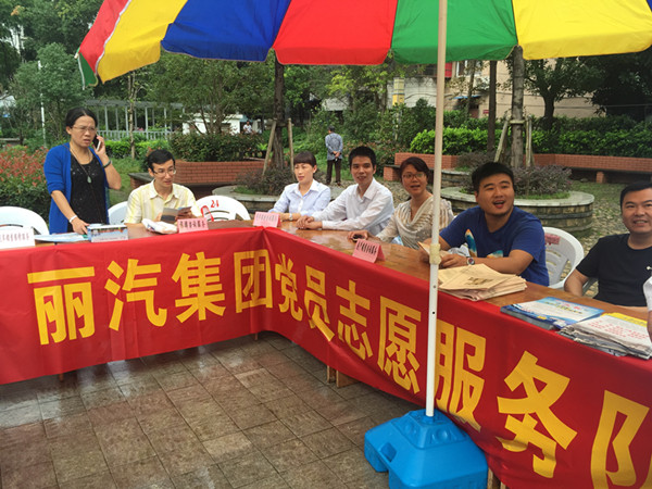 活動(dòng)當(dāng)天,麗汽集團(tuán)的黨員們一早就來到燈塔公園,面向廣大群眾展開了汽車班車時(shí)刻咨詢、汽車銷售維修、汽駕培訓(xùn)咨詢、旅游咨詢、房產(chǎn)銷售咨詢等多項(xiàng)服務(wù)。雖然天空中飄著雨,但黨員同志和社區(qū)群眾的熱情不減,短短半天時(shí)間,黨員們共向到場群眾發(fā)放宣傳冊頁及資料2000份,解答咨詢60人次,贈(zèng)送雨傘200余把,紙巾100盒,環(huán)保袋500只,惠及群眾800人次。