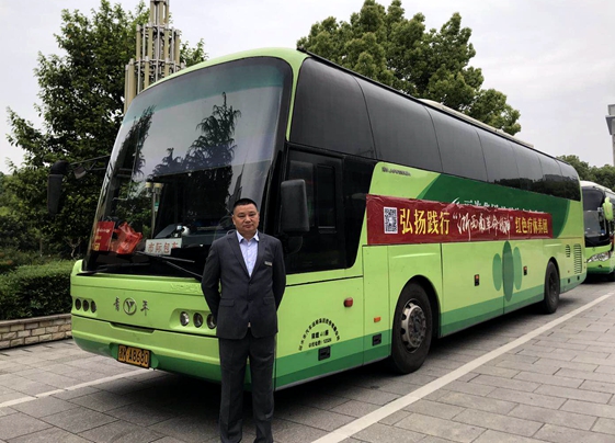 4月19日早上,在市政府南門廣場(chǎng),麗汽集團(tuán)旅游汽車分公司16輛綠色豪華大巴齊刷刷地排列著,16位駕駛員統(tǒng)一著裝,整齊劃一地站在車門迎候游客。這是2019年麗水市弘揚(yáng)踐行“浙西南革命精神”系列活動(dòng)啟動(dòng)儀式暨勞模、一線(優(yōu)秀)職工紅色療休養(yǎng)活動(dòng)發(fā)團(tuán)儀式的現(xiàn)場(chǎng)。綠色大巴與著紅色服裝的先進(jìn)相互映襯,形成了“紅+綠”融合發(fā)展的場(chǎng)景,和諧的畫面吸引了在場(chǎng)人員的關(guān)注,紛紛拿出手機(jī)拍場(chǎng)景,曬朋友圈。