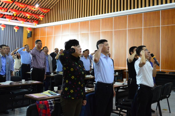 “我志愿加入中國共產(chǎn)黨,擁護黨的綱領(lǐng),遵守黨的章程,履行黨員義務(wù),執(zhí)行黨的決定,嚴(yán)守黨的紀(jì)律,保守黨的秘密,對黨忠誠,積極工作,為共產(chǎn)主義奮斗終身,隨時準(zhǔn)備為黨和人民犧牲一切,永不叛黨”,黨委書記黃偉君帶領(lǐng)與會人員重溫入黨誓詞。