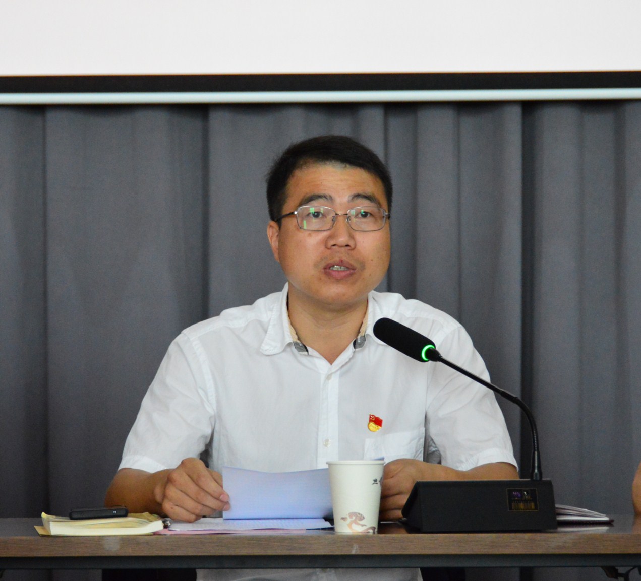薛和有副書記結(jié)合主題教育中學(xué)習(xí)“兩書一章”的收獲、感悟和思考,圍繞“四個意識”“四個自信”“兩個維護”要求,以“講政治、懂規(guī)矩、守紀(jì)律、勇?lián)?dāng)”為題授課。